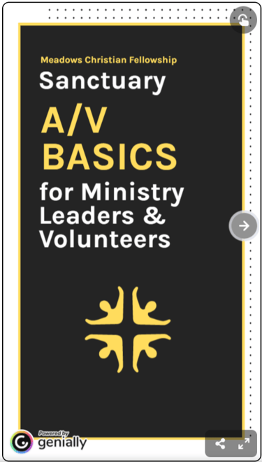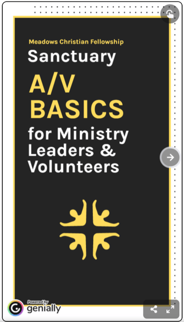 The sanctuary at Meadows Christian Fellowship sees regular use each Sunday, but it also is a space where numerous other events take place. While there is a Tech Team in place on Sunday mornings, other ministries often have basic A/V needs that they can handle themselves. They just need to know how! To meet this need, I created a microlearning aid in Genially so that those ministry leaders and volunteers would have a clear and simple walkthrough at their fingertips. I posted a QR code next to the soundboard for quick and easy access.