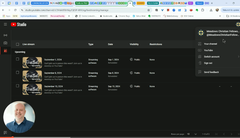 With a staff transition causing some shifting of duties, there was a need to create a tutorial for church staff and volunteers at Meadows Christian Fellowship to learn how to schedule the Sunday livestreams in advance. I created this quick tutorial video on Loom to walk people through the process step by step. (And yes, I do often have dozens of tabs open in Chrome. Don't judge!)