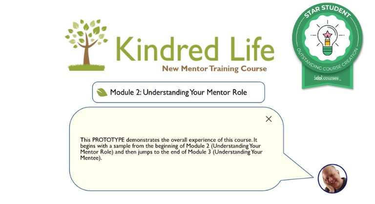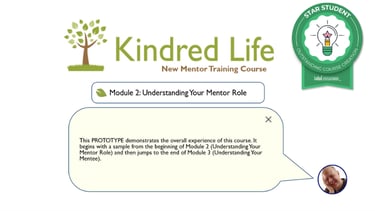 This prototype provided a working sample of content from what would become Modules 2 and 3. This gave Kindred Life leaders a chance to test out the navigation, see and hear some of the elements together, experience how the content would be presented, and try out a scenario-based assessment.
